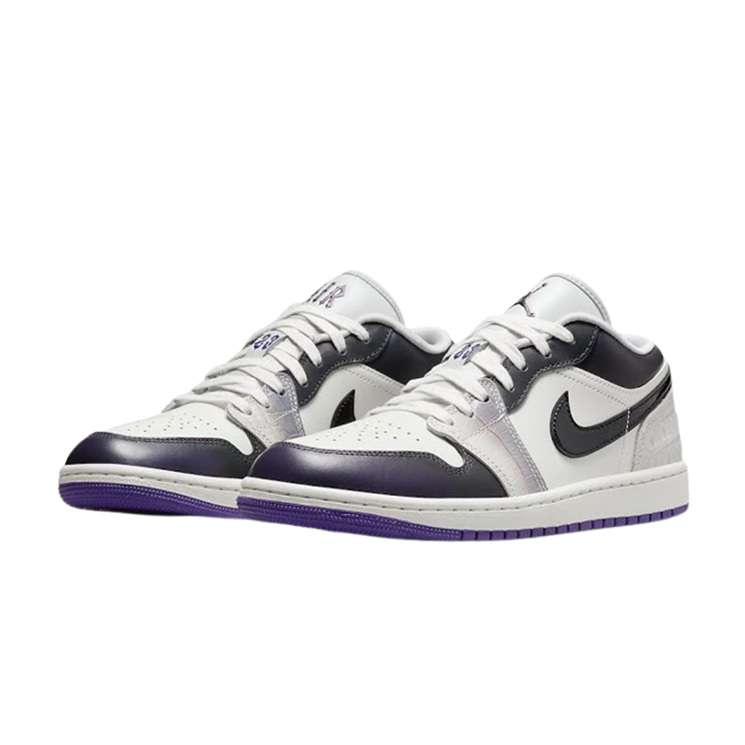 Легендарная классика в низком исполнении, вдохновленная музыкальным стилем панк-рок 70-х годов. Кроссовки Jordan Air Jordan 1 Low SE созданы из натуральной кожи. Перфорация на мыске обеспечивает активную циркуляцию воздуха. Амортизирующая вставка Air отлично пружинит и защищает стопы от ударных нагрузок. За стиль отвечает фиолетовая подметка с цепким протектором и вставки из рельефной кожи. В комплект входят металлические обвесы и брелок.