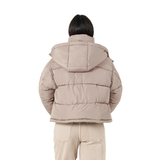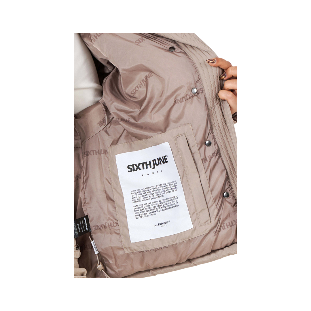 Короткий пуховик Sixth June: стёганый эффект с набивкой, боковые карманы на молнии, внутренний карман, центральная застёжка-молния и кнопки, съёмный капюшон на липучке, кулиски, регулируемые манжеты, внутренняя кулиска на талии, логотип на резиновой нашивке по краю, оверсайз крой, приспущенные плечи.