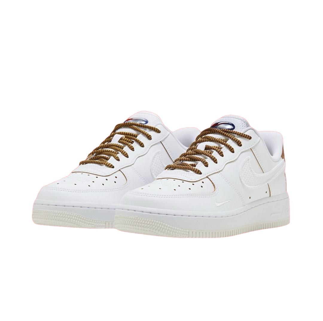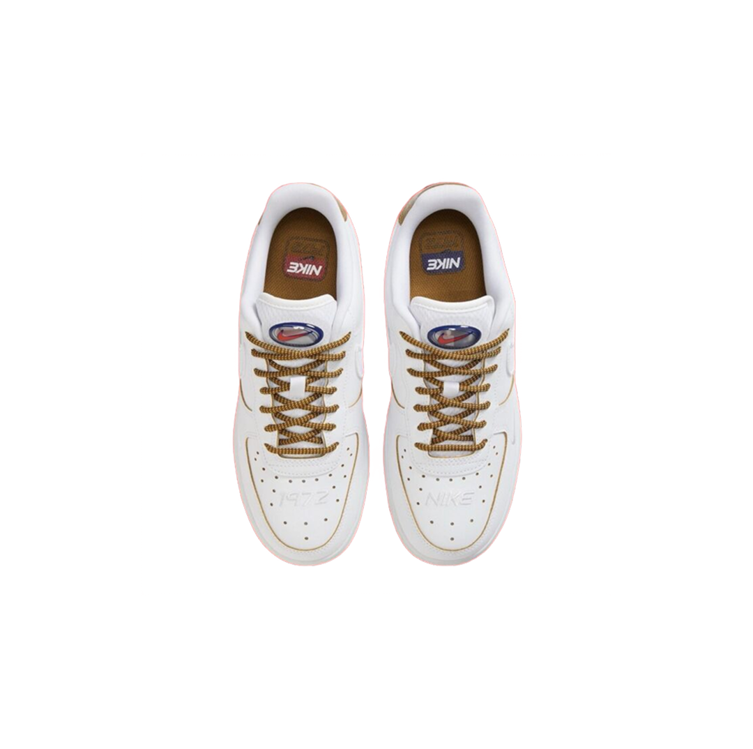Эта модель Air Force 1 Low "1972" — изысканная дань уважения году основания Nike, сочетающая белоснежную кожаную конструкцию с винтажными деталями (сетчатый свуш, вытисненное изображение Богини Победы, надпись "1972 / NIKE" и подошва цвета "Sail"), что делает её утонченным символом спортивного и культурного наследия бренда.
