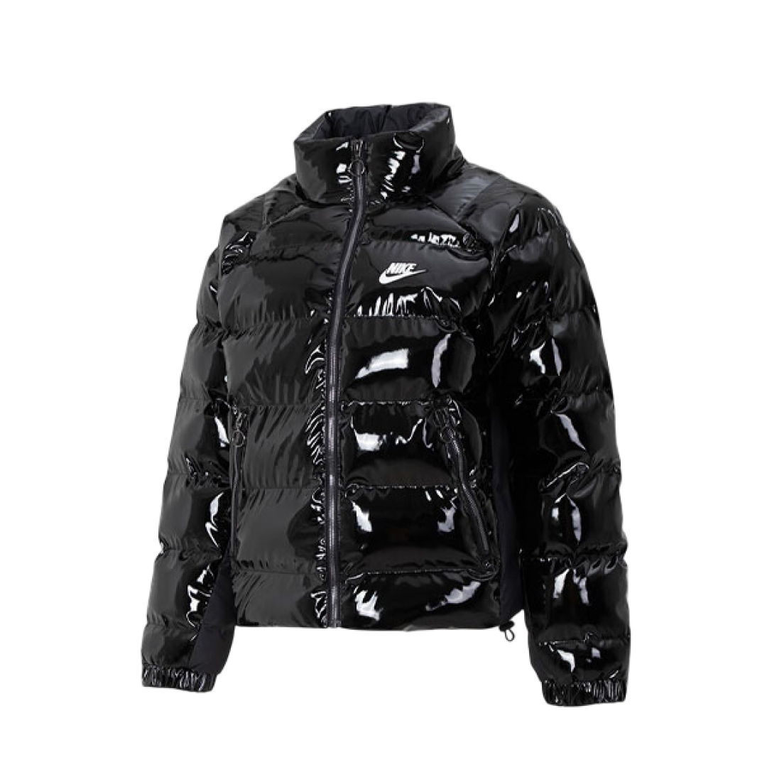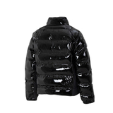 Это глянцевая черная куртка с воротником-стойкой, выполненная из 100% полиэстера и утепленная инновационным синтетическим наполнителем Thermore™ EcoDown из переработанных материалов. Модель отличается современным дизайном и функциональностью (регулируемая нижняя кромка, карманы на молнии), обеспечивая комфорт и стиль в холодную погоду.