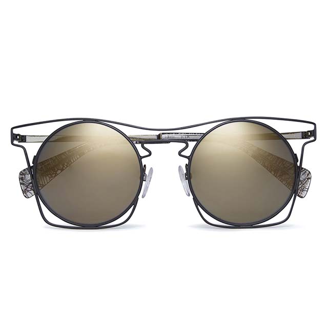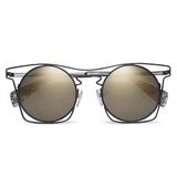 Оправа выполнена из уникального сочетания материалов — пластика, металла и ацетата, что подчеркивает высокий уровень дизайна и производства. Серые линзы с зеркальным покрытием не только обеспечивают надежную защиту от солнечного света, но и создают эффектный внешний вид. Модель с круглым силуэтом имеет 100% UV-фильтр и поставляется в фирменном футляре.