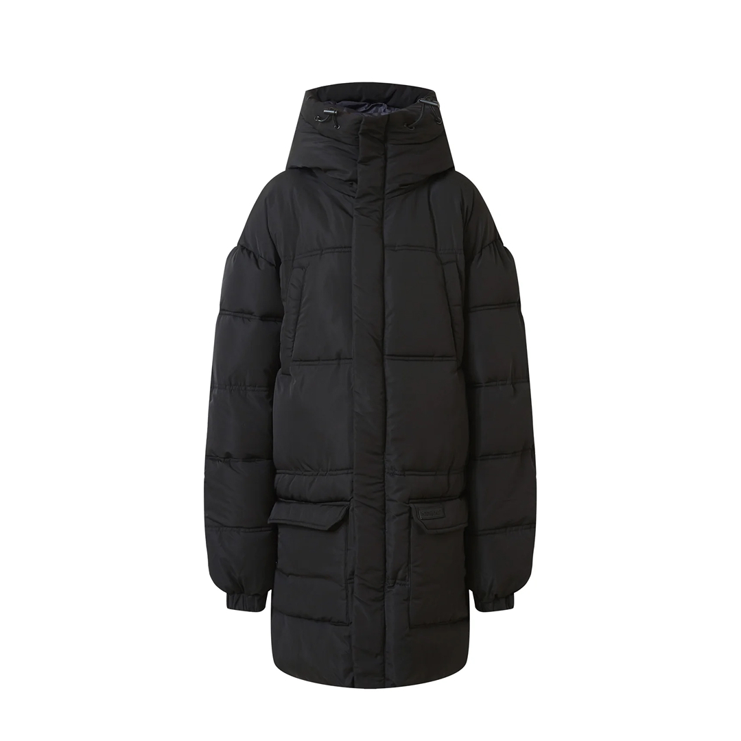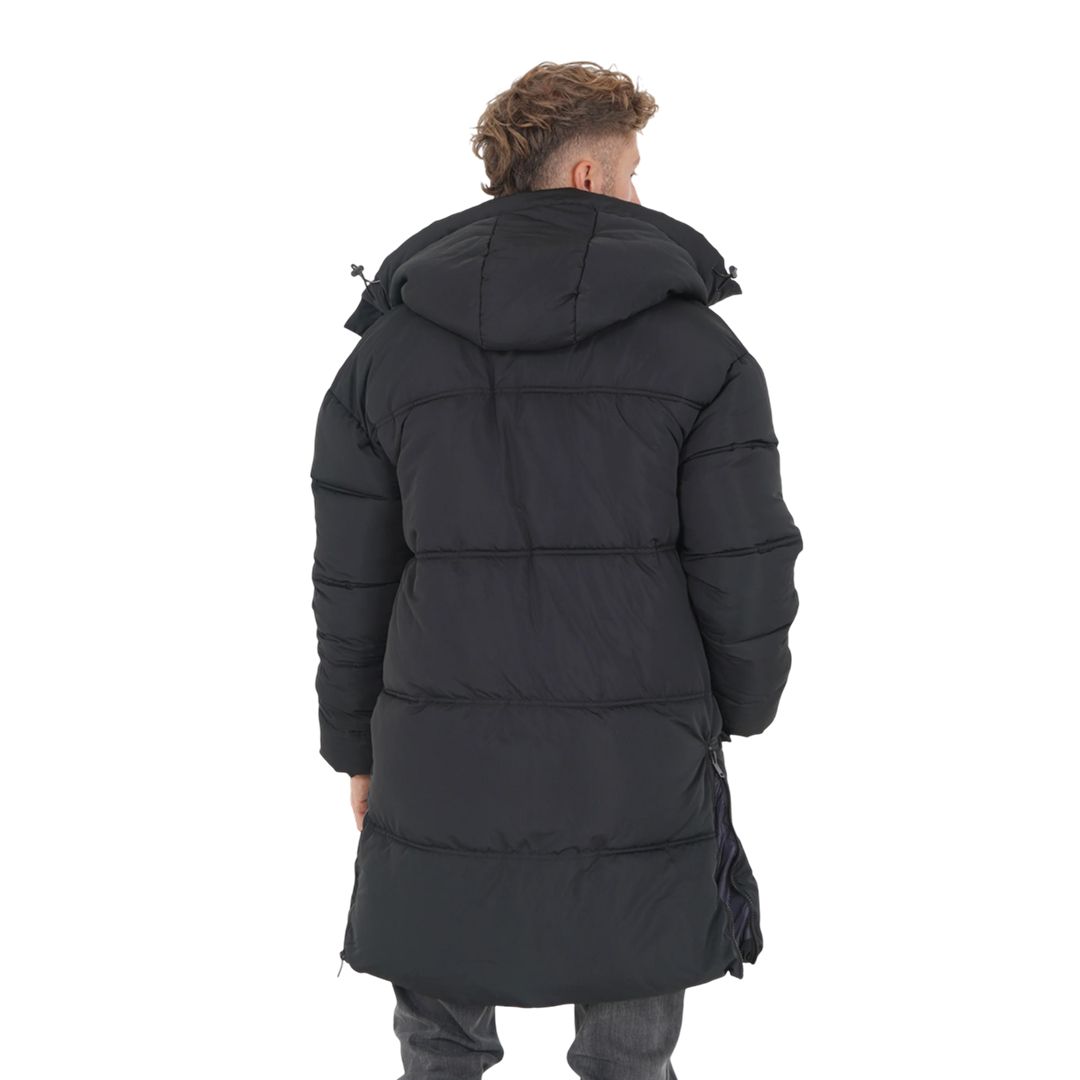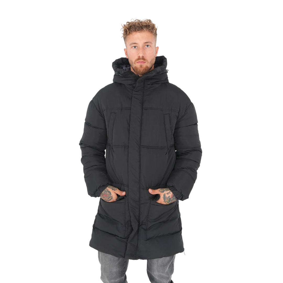 Мужской пуховик Sixth June со стеганым эффектом, черного цвета: высокий воротник с капюшоном на шнурках, центральная застежка на молнии и магнитах, карманы с клапанами и нагрудные карманы на магнитах, внутренние карманы, логотип-патч на кармане, боковые разрезы на молнии и манжеты в рубчик; Классический крой; Состав: 100% полиэстер.