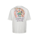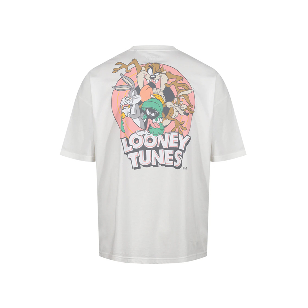 Мужская футболка RE:COVERED X LOONEY TUNES с принтом, хлопковый круглый вырез, белая. Стильная мужская футболка от RE:COVERED в коллаборации с LOONEY TUNES, имеет большой принт на спине и логотип спереди, обеспечивает комфортную посадку, с короткими рукавами и круглым вырезом горловины, удобна в носке благодаря высококачественному хлопку.