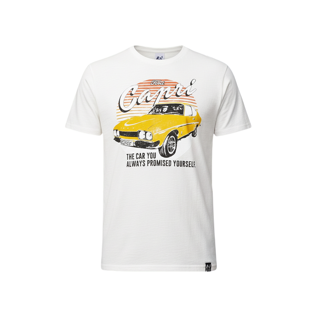 Стильная футболка для мужчин от RE:COVERED в сотрудничестве с BSA с принтом Ford MUSTANG спереди. Надпись «МАШИНА, КОТОРУЮ ТЫ ВСЕГДА ОБЕЩАЛ» на передней стороне футболки, простая спина, короткие рукава и круглый вырез. Удобны в носке благодаря высокому качеству изготовления.