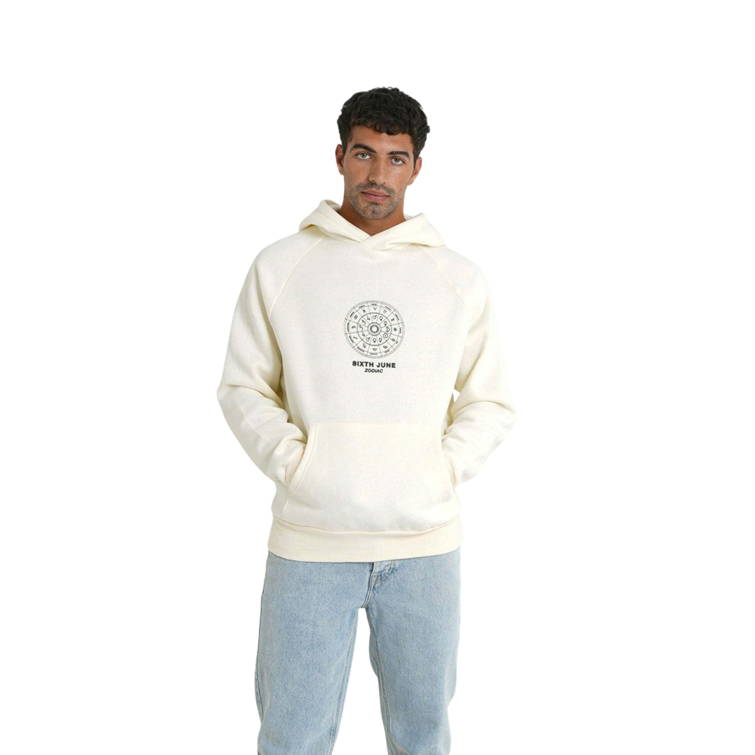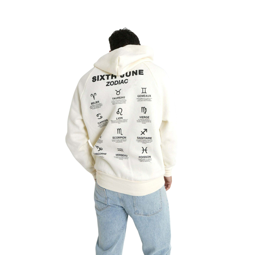 На спине напечатан смысл знаков зодиака, знаки зодиака напечатаны на передней части. Карман-кенгуру, мягкая и теплая внутренняя отделка. Комфортный (свободный) крой, приспущенная линия плеч. Бежевый дизайн (цвет).